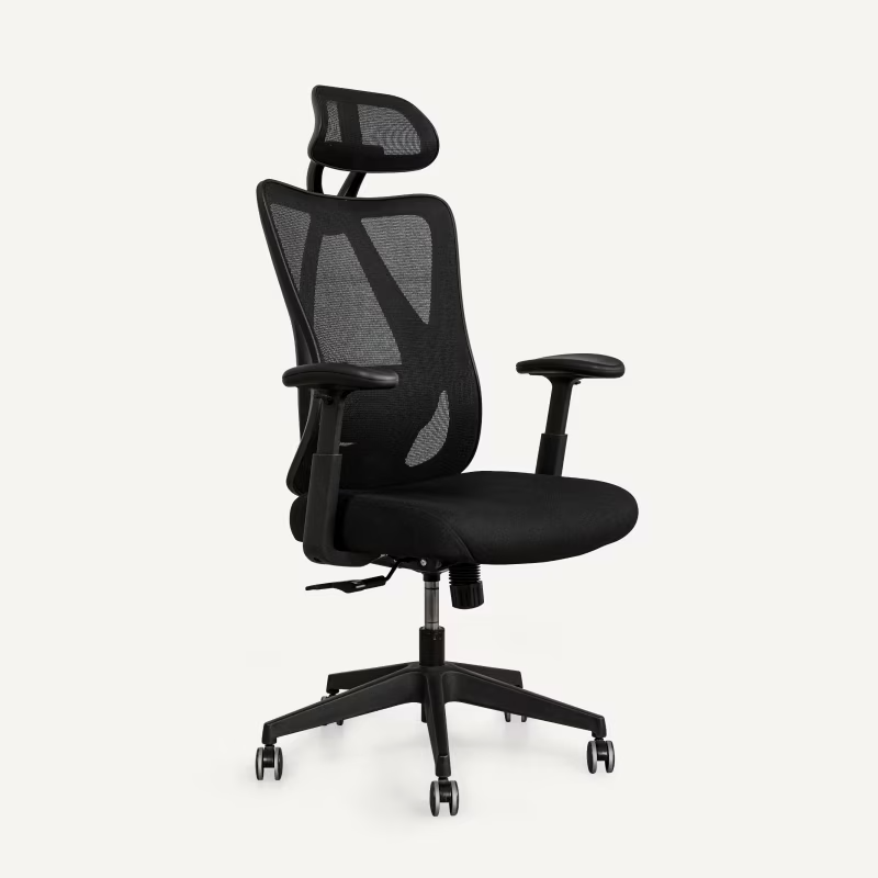 This reclinable chair features 2D adjustable lumbar support, a free-rotating headrest, breathable mesh, and a plush seat cushion to support you throughout the day.