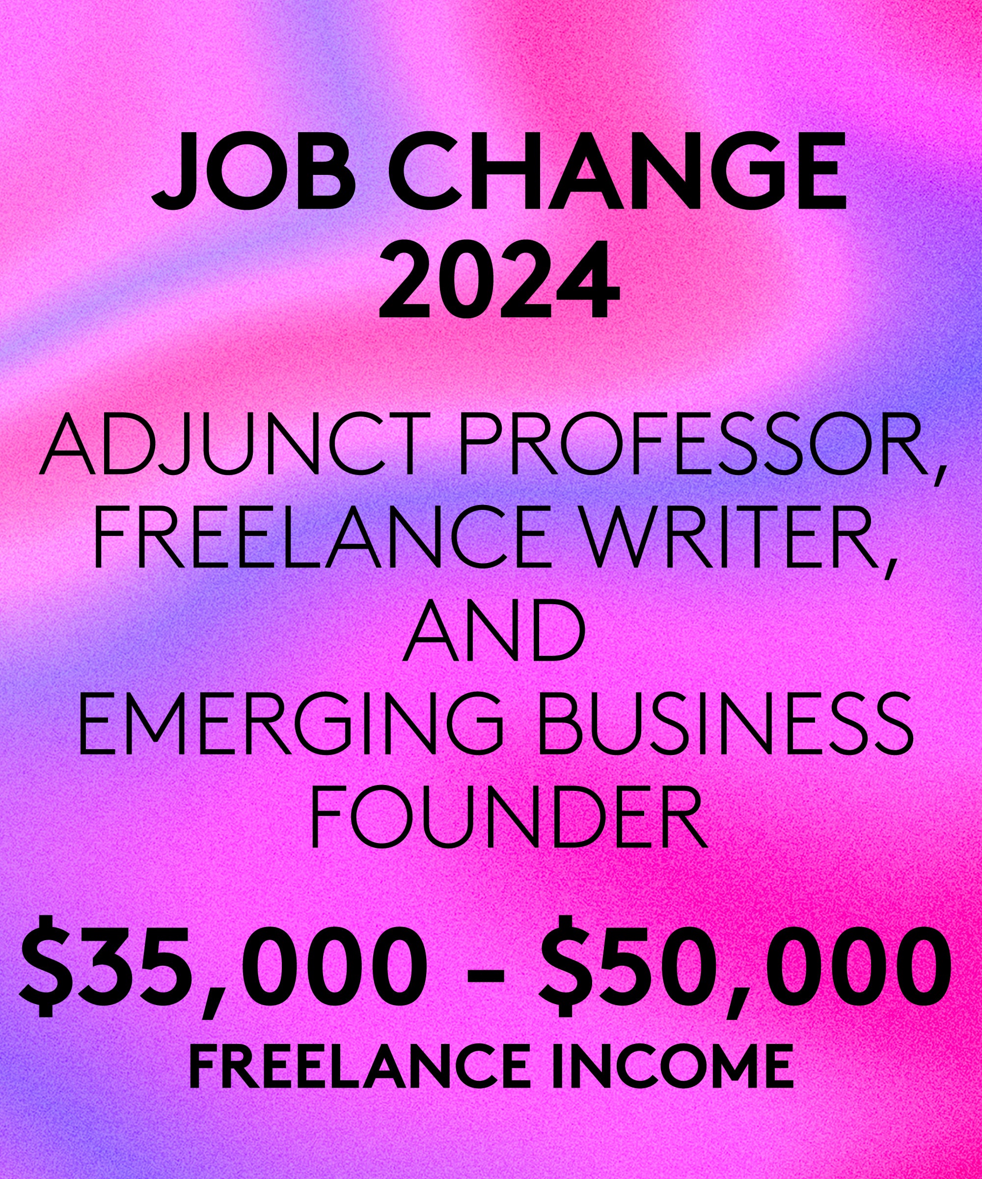 Current industry and job title: Adjunct professor, freelance writer, and working on developing my own business