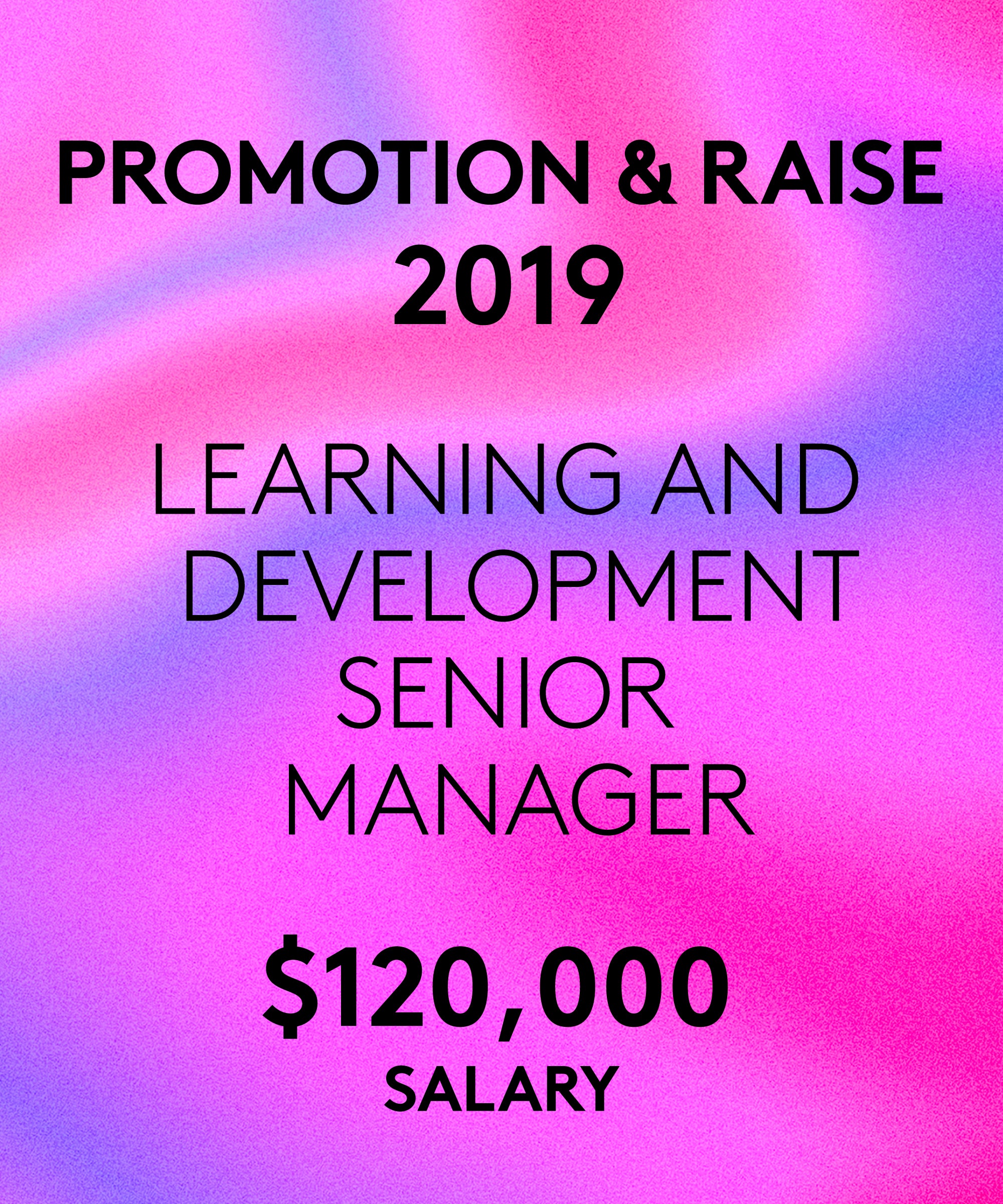 The job was very demanding and I had been putting in a lot of work. I created several systems from scratch, as the company was just learning how to function in the learning and development space, and so barely had the foundations in place. I was given the merit increase by human resources while I worked with them to define the compensation structure for my team.