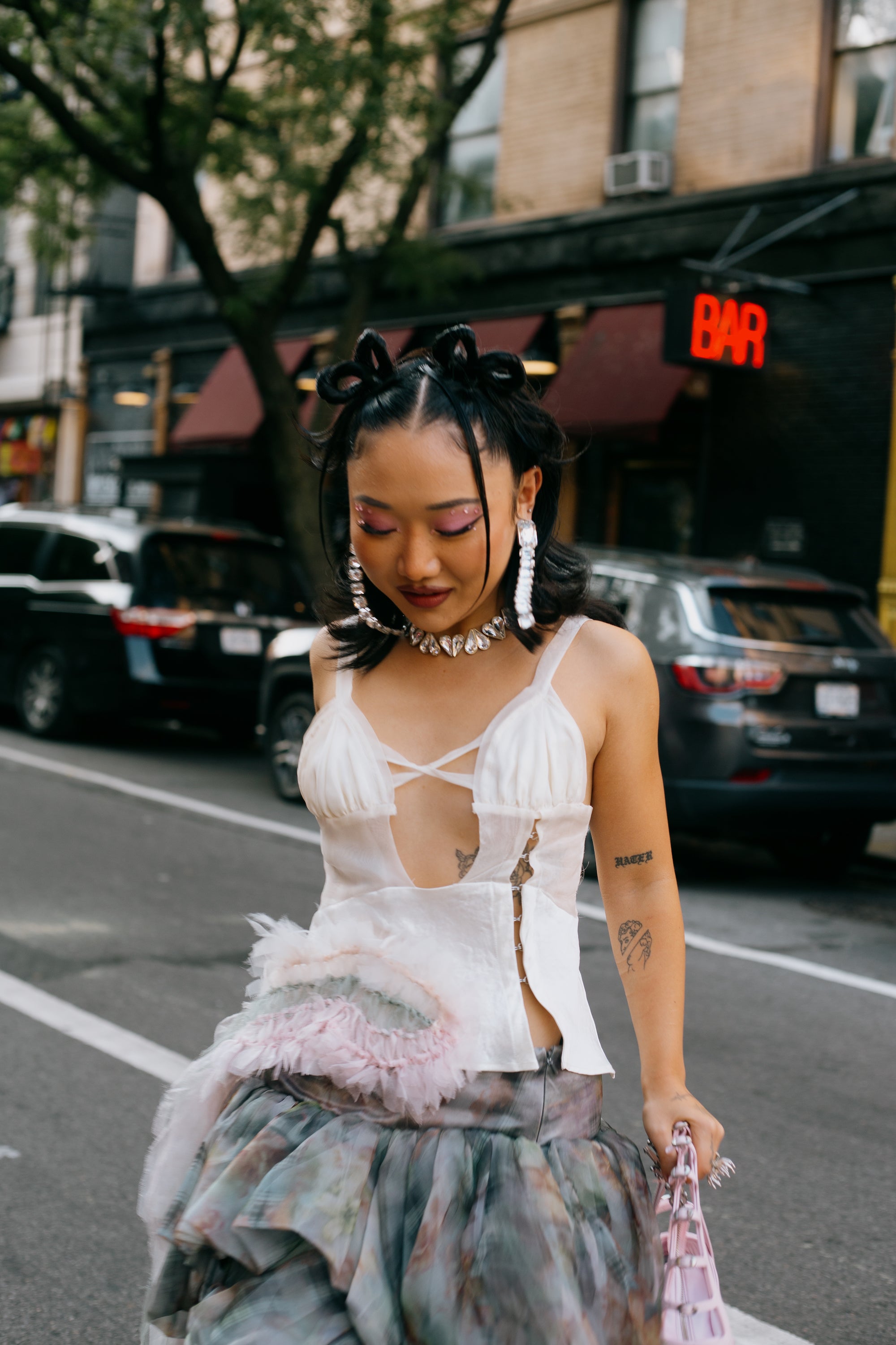 All linked products are independently selected by our editors. If you purchase any of these products, we may earn a commission.You can always count on the guests at Sandy Liang to serve excellent hair and makeup looks. Adding some layers to curly hair creates shape and definition. Photographed by Flordalis EspinalThe “hacked” bob (sliced sharply at the ends) is a highly requested cut in New York, London and Paris right now. The icy blonde hue is the cherry on top here. Photographed by Flordalis EspinalAs spotted on this guest outside Sandy Liang, wet look hair is going nowhere. Bumble and bumble Multitalented Sculpting Medium Gel will help you achieve a similar vibe without the rock hard finish. Photographed by Flordalis EspinalVintage finger waves with a modern edge? We're into it. This is the ultimate way to switch up a short pixie cut. Photographed by Flordalis EspinalThe guests at Collina Strada served up so many cool cuts but this simple, layered style caught our attention. The sharp center part and face-framing pieces lend it a '90s feel. Photographed by Flordalis EspinalProtective styles are commanding New York Fashion Week at shows like Off-White and Willy Chavarria. This street styler's chin-grazing braided bob is beautiful. Photographed by Flordalis EspinalRemember the “jellyfish” cut? It's back and it looks so good on this street styler outside Susan Alexandra and Rachel Antonoff's dog fashion show. It's essentially two styles in one: a blunt bob with feathered bangs, and long layers. Photographed by Flordalis EspinalChunky bangs? Tick. Face-framing pieces? Check. This cut nails two trends in one and looks just as good in an updo as it does worn down. Photographed by Flordalis EspinalThis soft bob spotted outside the Christian Siriano show makes us want to go for the chop (again). The center part and chunky ends give it a Posh Spice feel. Photographed by Flordalis EspinalThe long bob (aka lob) is far from boring, and here's all the proof you need. The twists, face-framing tendrils and flicky ends make this one of the cutest hairstyles of the weekend. Photographed by Flordalis EspinalIf you're after something low maintenance, team your lob with a deep side part and blunt ends to make hair appear thicker. Photographed by Flordalis EspinalSoft yet chunky, this bob haircut is reminiscent of the 1920s. A smoothing brush like ghd Duet Blowdry 2-in-1 Hair Dryer Brush will help you achieve a similarly flawless finish. Photographed by Flordalis EspinalCurls and layers are a match made in heaven, as proven by this street styler outside the Susan Alexandra x Rachel Antonoff fashion show on Friday.Photographed by Flordalis EspinalThis bob is unique for two reasons: the scattered bangs and the curled ends. Use the ghd Chronos Styler 1 Inch Flat Iron to achieve a similar swishy finish. Photographed by Flordalis EspinalWe're sold on these asymmetric, wet-look bangs, but it's the two-tone dye job that really grabbed our attention. Is pink due a renaissance? We think so.Photographed by Flordalis Espinal