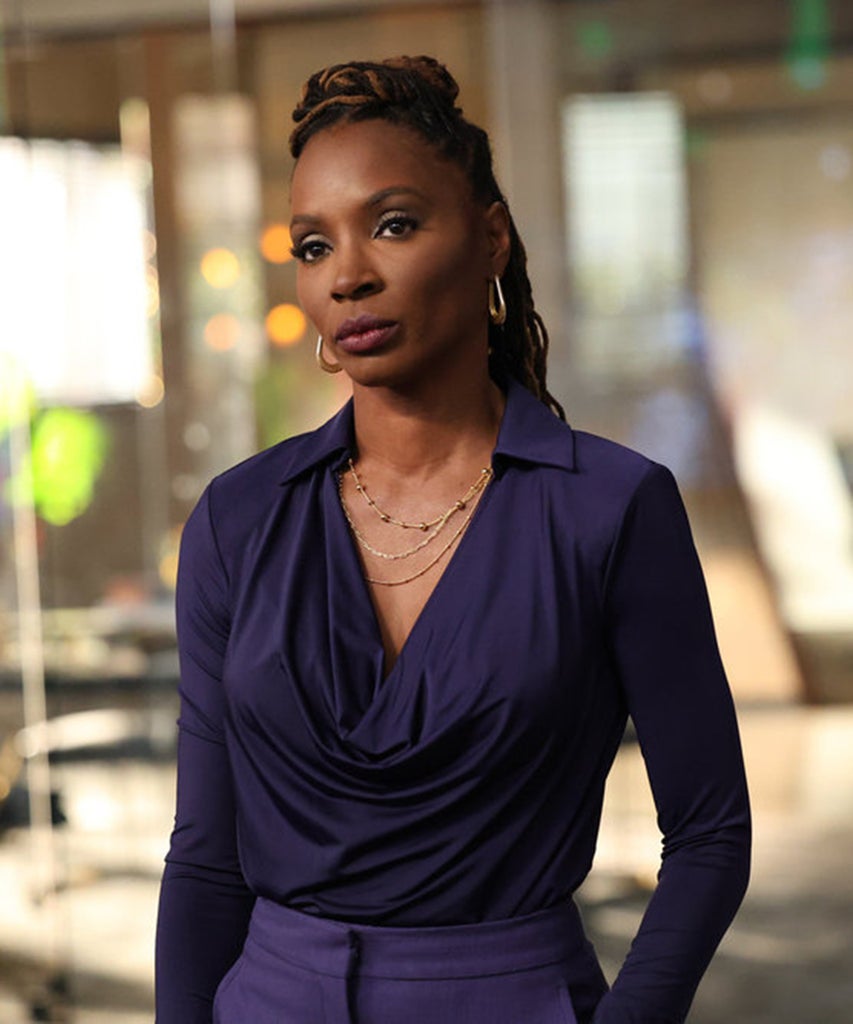 SH: So the one thing that I made clear from the beginning is, Gabi will always wear heels, right? I used to only wear heels before I had kids. I taught myself how to sprint in heels in case I was ever in a bind, because I’m always in heels. So that was one of the Gabi superpowers. And once you build up from a heel, it’s got to be about fashion. And yes, you think it’s just for vanity or to look good or whatever, but it’s more than that. If you think about the journey of this character, the one thing she has control of is how she presents herself. One of the things that Sir taught her was to present herself. So he’s a core part of her upbringing. So all of that. If she can’t control anything: I control my contour, and I’m going to look good. So we really like to play with color. We want to be fashionable. It’s all about doing all of those things and making it tailored and crisp because it is a part of her control and a part of how she wants to present to the world.