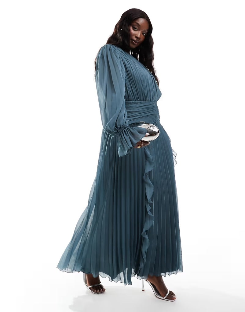 For black-tie weddings or New Year’s Eve bashes, these maxi dresses bring elegance to every detail — flowing pleats, ruffles, and shimmering embellishments.