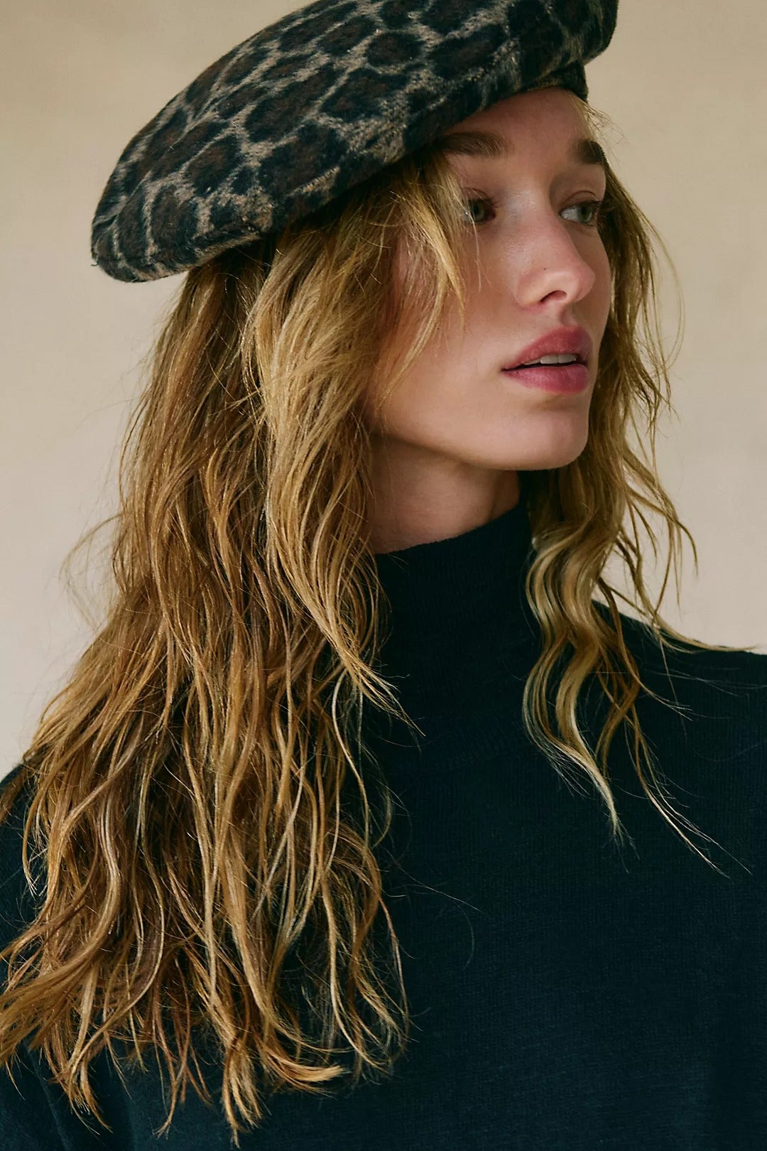 Understated Leather Penny Leopard Beret, $, available at Free People