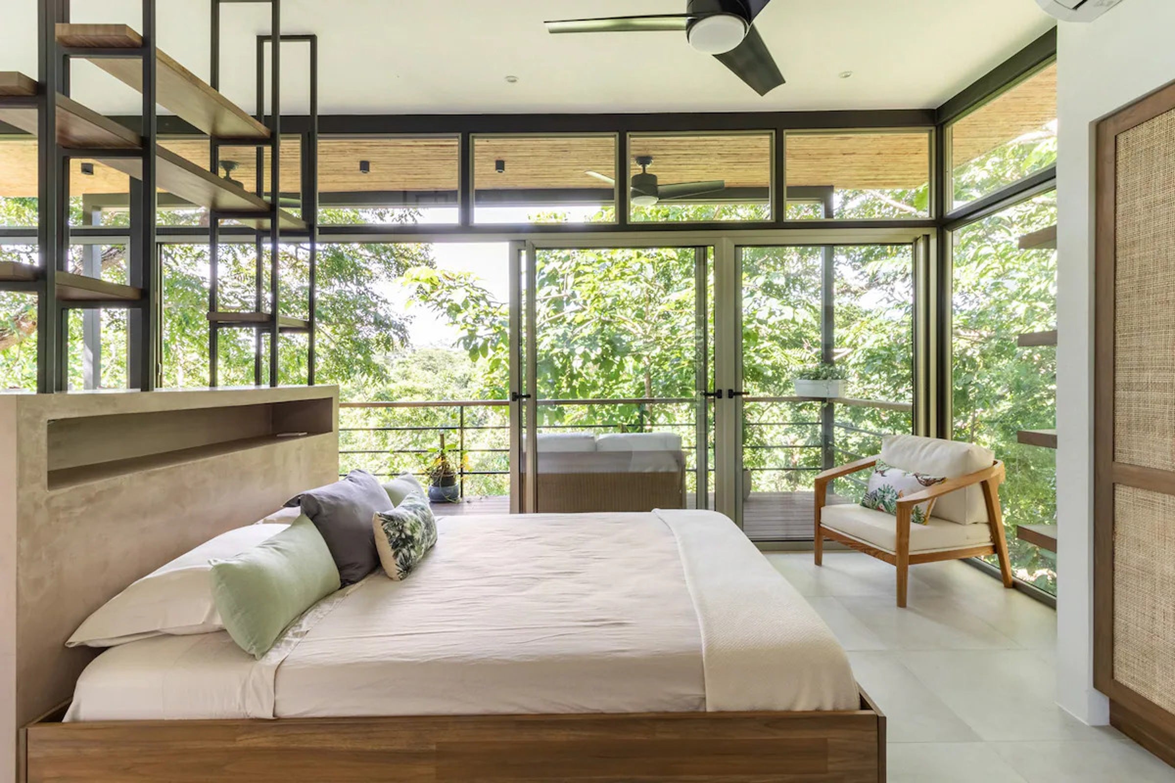 The unique design of this light-filled "floating studio" means that you will be one with nature in a truly unique way. Half of the property is suspended over a lush jungle, so howler monkeys and anteaters will often come over to say "hi." Sleeping in the jungle has never felt more luxurious.