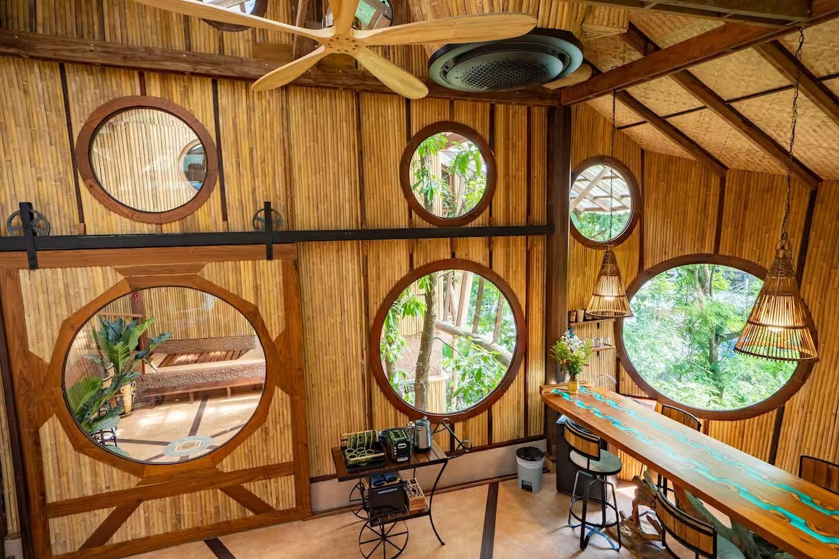 Our calendar alerts are already set for the premiere of The White Lotus Season 3, which will take place in Thailand. This Airbnb is giving us even more travel FOMO: Set in the northern province of Chiang Mai, the luxe treehouse comes with a private pool and fluffy loft beds. The most impressive feature? A vintage helicopter built into a corner of the living room, which serves as a mini TV lounge.