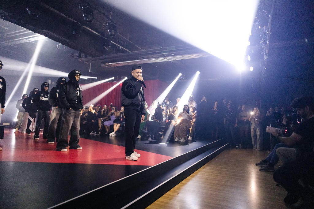 Inside, all of the above gathered to watch models walk the runway in Rhuigi’s designs. The collection was exactly as Rhuigi promised, a moody menswear showcase of modern Americana aesthetics that I could picture any athlete incorporating into their game day fits.