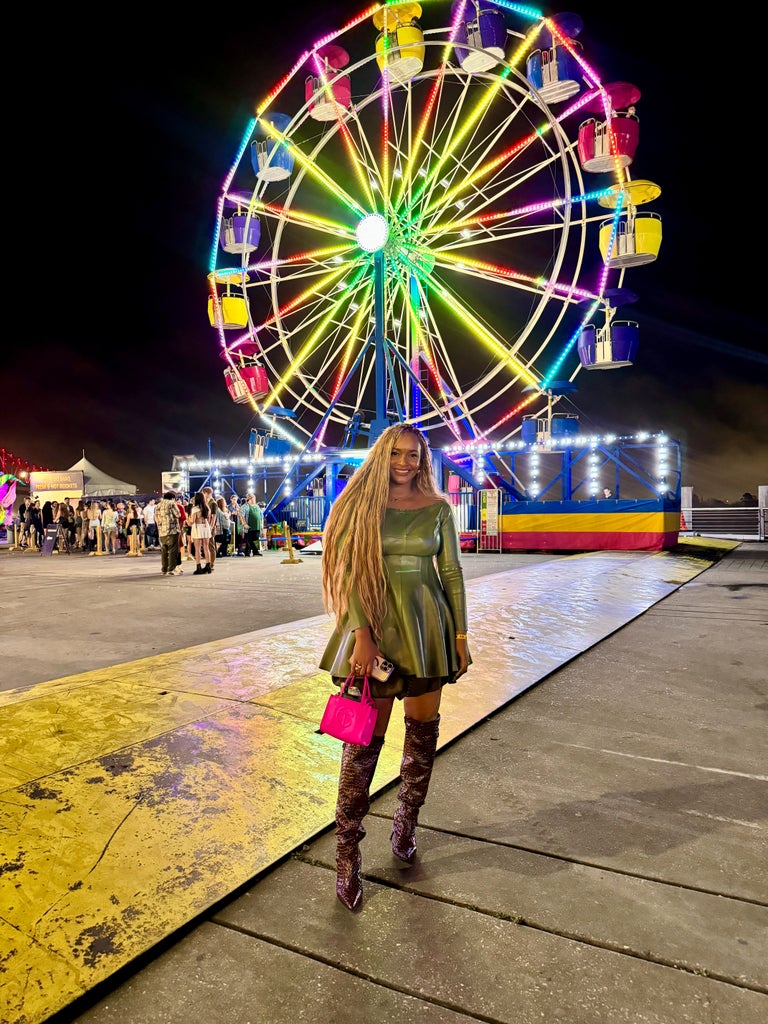 The official Super Bowl tailgate concert is not like your typical post-up-beside-a-van-and-grill-hot-dogs tailgate. It’s way bougier than that — in the best way. Post Malone is headlining and you can watch it live on YouTube. Whether you’re there in person or streaming from home, it’s the perfect warm-up for the main event. The space was decked out with tents, bars, beignet stations , and a special performance by Post Malone. As we were grabbing drinks, dancing to Post Malone, and trying all the various food stands we could before the game in our best Eagles gear, I couldn’t help but look around and feel grateful for the opportunity to be there. Influencers like fashion model, photographer, and stylist Wisdom Kaye were also spotted taking in the pre-game festivities.