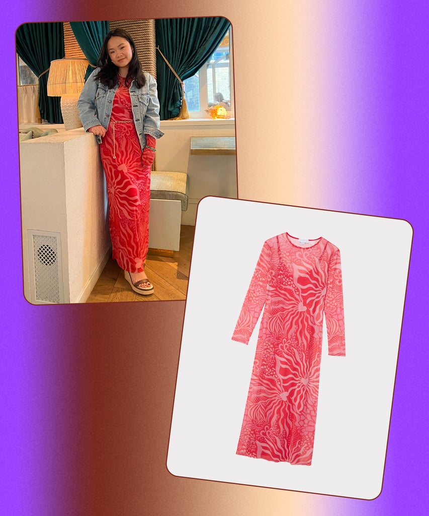 I didn’t want a super clingy fit, so I took a size UK 12. It had the right amount of give for me, even though the size quiz suggested a size UK 10. I do have to wear my tallest wedges with it, since the length goes past my ankles on my 5’1” frame. (This is the only colorway that doesn’t come with a petite length, sadly.)” — Venus Wong, Senior Writer