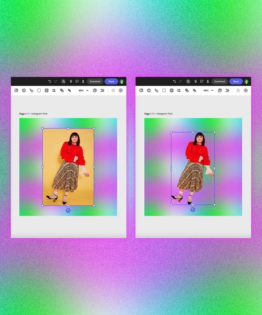 And because Adobe Express is integrated with other Adobe pro tools like Photoshop and Illustrator, you can receive, import, edit, and share assets without constantly downloading files or toggling between apps.
