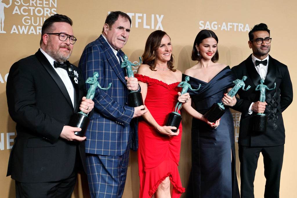 If you’re pleasantly surprised by this win, you’re definitely not alone, with stars Selena Gomez and Michael Cyril Creighton looking visibly shocked as they made their way to the stage, with Gomex saying: “Wait, we never win. This is so weird.” To be fair, OMITB is competing in a stacked category, going up against awards show darlings Abbott Elementary and The Bear (the latter of which typically — and somewhat bafflingly — continuously sweeps awards shows), but we’re thrilled to see Gomez and Co. finally receive their flowers.