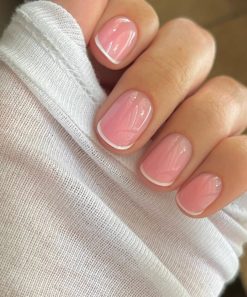 At first glance, the tinted French or “French glow” manicure looks incredibly similar to its classic predecessor. But the focus here is on the shine, which adds an almost jelly-like glow to the nails. “The French glow is designed to enhance your natural nail color, lend a super glossy effect, and create the illusion of perfected nails finished with a French tip,” explains session manicurist Ami Streets. While similar to the natural nail tints that have been popular over the last year, Streets points out that the tinted French differs slightly: “It mimics a refined French look, whereas nail tints provide just a delicate hint of color,” says Streets.