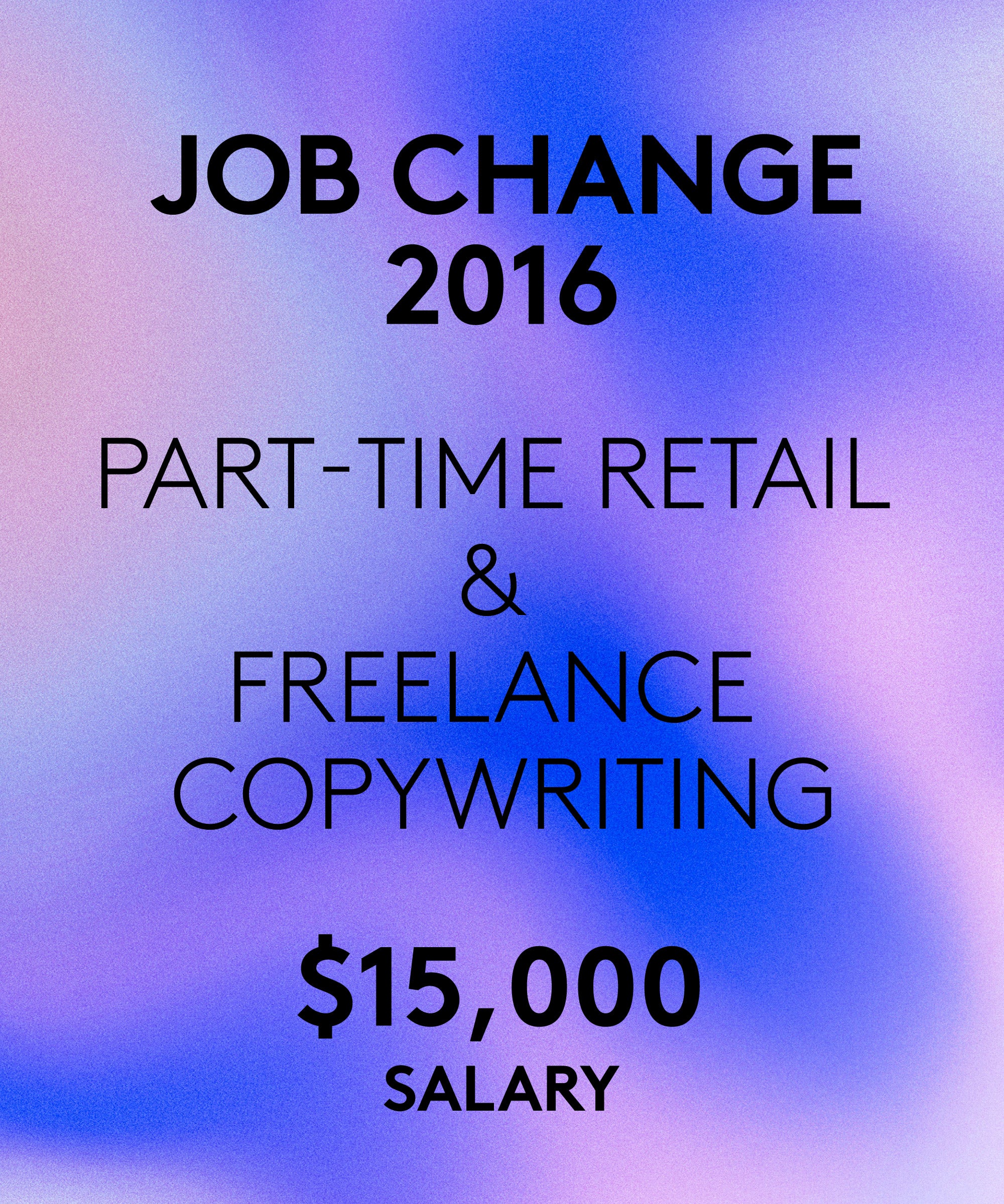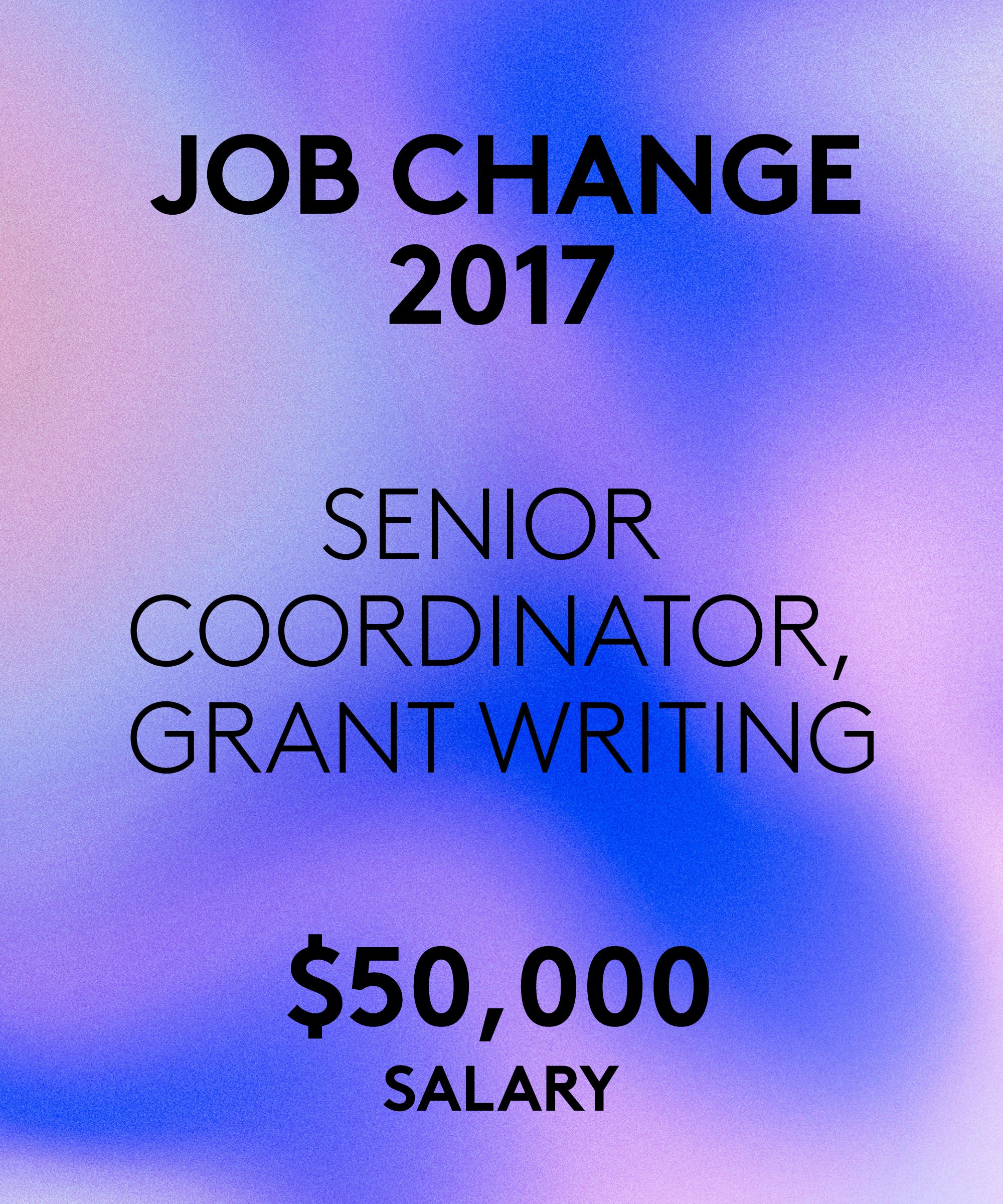 Associate Director, Non-Profit Current salary: $90,000 Number of years employed since school or university: 11 Starting salary: $37,000 in 2013 Biggest salary jump: From $15,000 to $50,000. I went from working part-time retail and some pretty low-paying freelance copywriting gigs to a full-time salaried position. Biggest salary drop: $37,000 to $0. I left my first real full-time job without anything lined up and traveled for a bit.