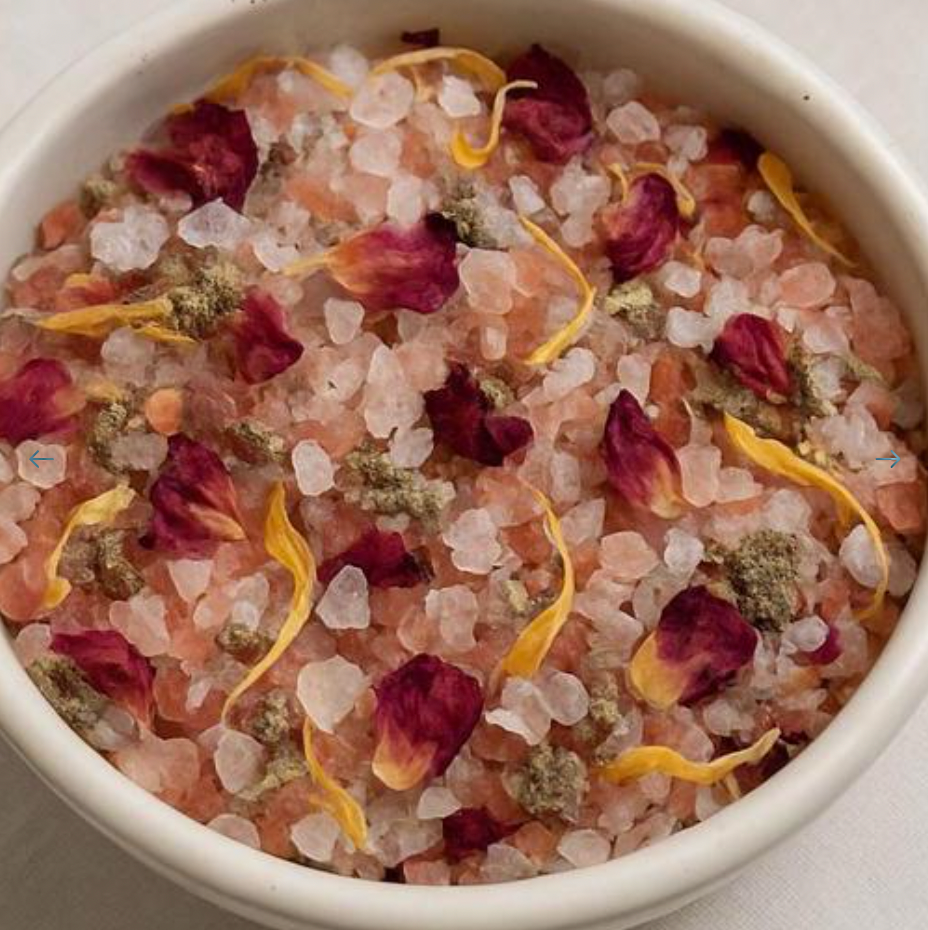 One of Drennan’s most beloved blends, the Heart Release Bath Soak, is crafted for moments of grief, heartache, or emotional heaviness. Made with pink Himalayan and Epsom salts and infused with red clover, yarrow, yerba santa, calendula, and rose petals, it’s designed to cleanse emotional residue while inviting protection, softness, and ancestral support. The herbs are chosen with intention: red clover to nourish the heart, yarrow and yerba santa for release and protection, calendula to soothe, and rose to open the heart.