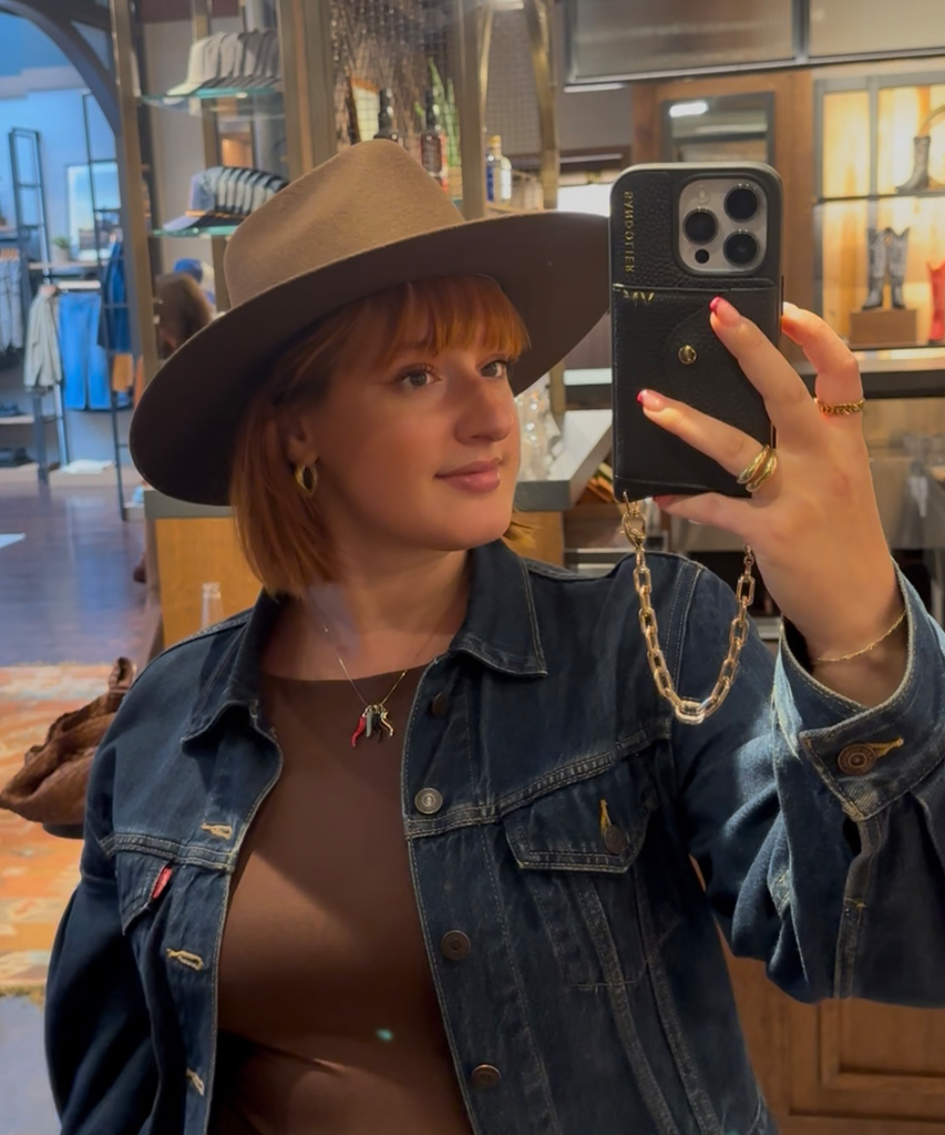 After exploring additional in-store amenities (including hat shaping and boot cleaning), I tried new styles across the brand’s boots, hats, and bags. But Tecovas isn’t just in the accessories game; Tecovas’ new fall styles include everything from cozy cardigans and kitschy graphic tees to vintage-inspired jeans.