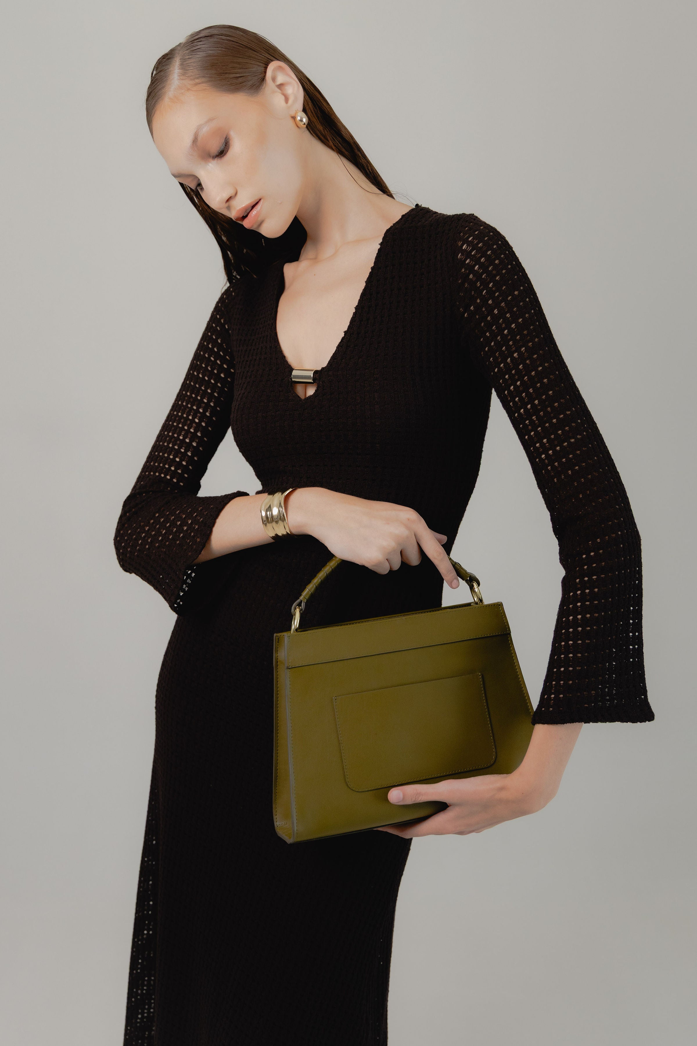 My favorite fall look from SENTIENT’s timeless collection is the Panthera Tote in Olive Green. This structured tote is crafted from cactus leather, giving it a firm silhouette that holds its shape beautifully. The olive green tone feels warm yet versatile, making it ideal for autumn’s camel trenches, cream knits, and rich terracotta tones. The bag features dual shoulder straps and clean lines, offering both elegance and everyday functionality while elevating your seasonal look.