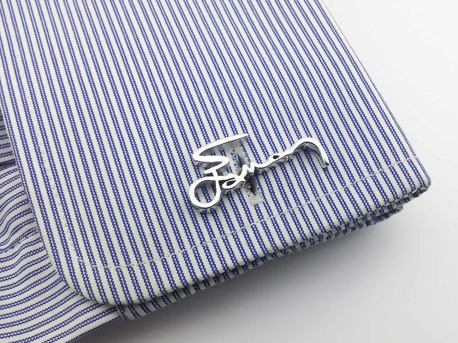 PersonalCufflinks Personalized Name Steel Cufflinks, $, available at Etsy