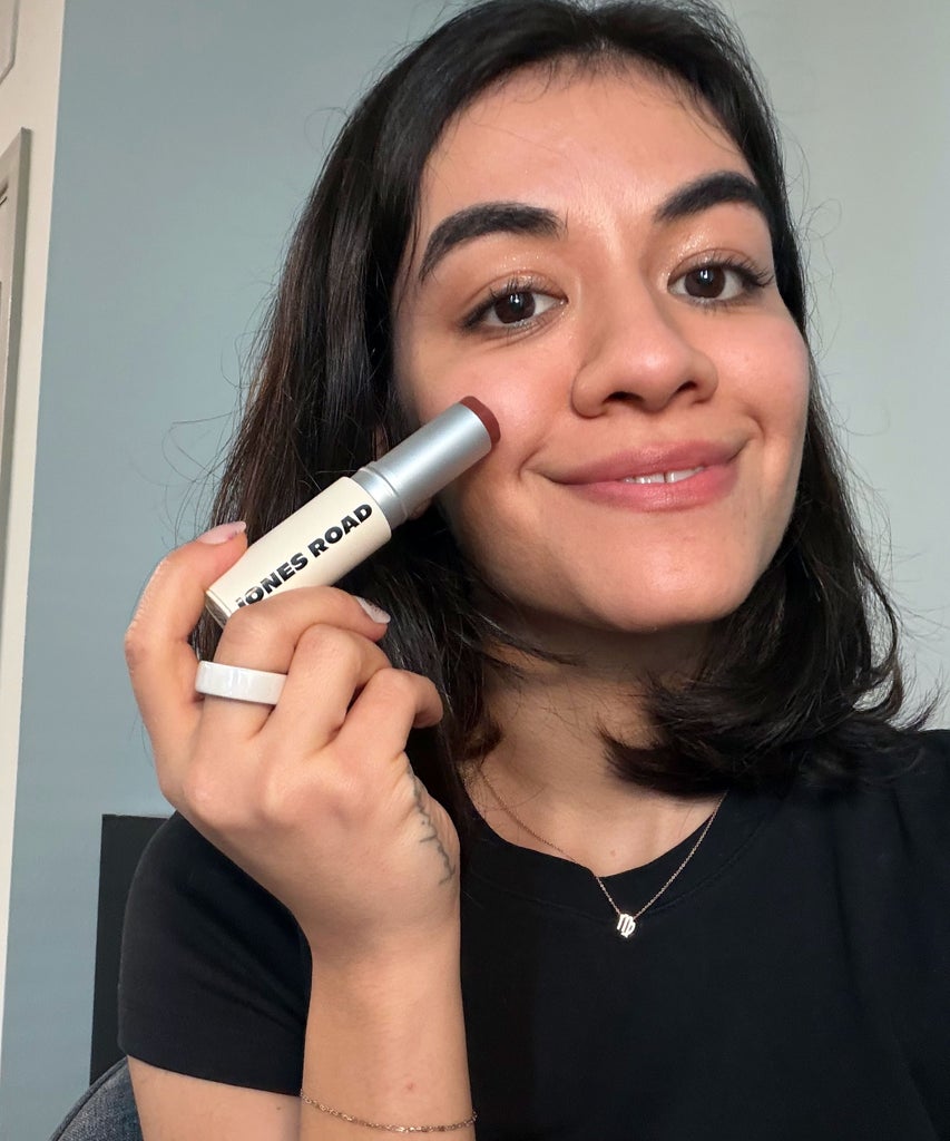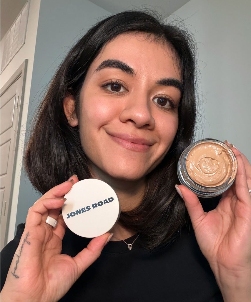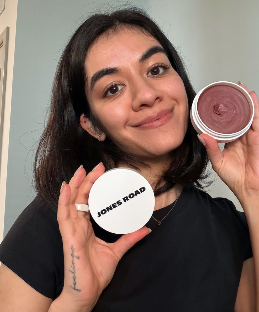 The Jones Road product I was unquestionably most excited to try was the Miracle Balm. I’m a big fan of multipurpose lip and cheek cream tints since they give the prettiest, natural-looking flush. I’ve been using this non-stop, and it earned full MVP status during a recent ski trip in Sun Valley. When I’m in the mountains, my normally oily skin becomes insanely dry and flaky. The balm’s emollient and gentle texture is perfect for adding much-needed moisture to my cheeks, which get the driest. It’s also great for adding a barely-there tint to chapped lips and prepping them for lipstick while I do the rest of my makeup. The balm needs to be warmed up before applying, which is perfect for people like me who love applying makeup with (clean!) fingers. I now own several shades including Tawny (a warm, bronze terracotta — my everyday go-to) to Pinky Bronze, a previously limited-edition shade that was added to the permanent lineup last year. All shades have sheer pigmentation that can be built up if desired.